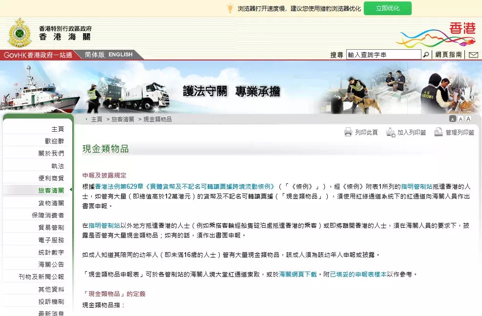 根據(jù)中國(guó)香港海關(guān)官網(wǎng)的信息,任何人若入境中國(guó)香港時(shí)身上攜帶總價(jià)值逾12萬(wàn)元港幣(或等值外幣),均需向海關(guān)主動(dòng)申報(bào)。