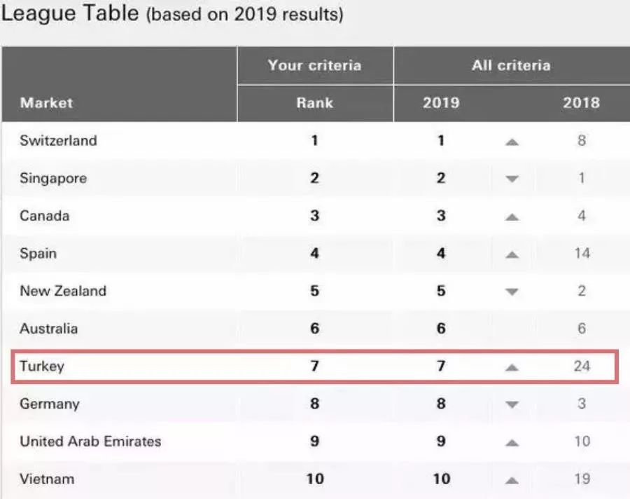 近日匯豐銀行發(fā)布了《2019年全球移居報告》,土耳其不僅力壓德國,更是從去年的第24位上升到第7位,成為世界上最受歡迎的移居地之一。